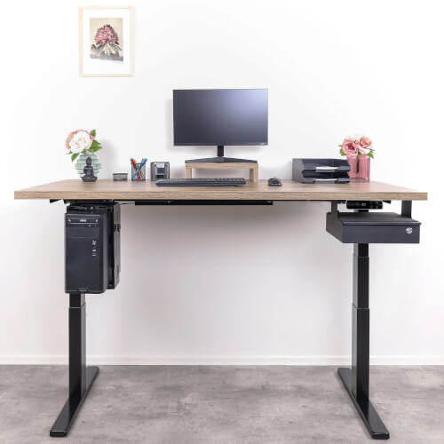 Každý zákazník preferuje jinou rozteč stolové podnože a případný přesah okraje desky od nohou stolu a různé umístění ovladače. Někomu vyhovuje mít nohy až u úplného kraje desky, někdo naopak preferuje nohy více zasunuté do středu desky. Stejně tak preference na umístění ovladače jsou rozdílné. Z tohoto důvodu nemají desky předvrtané díry.
