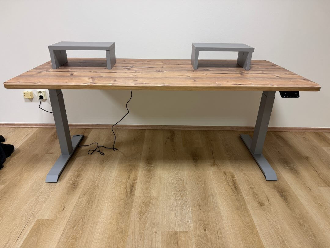 Vybral som dosku hrubú 36 mm, rozmer 180 x 80 a k tomu som zvolil masivnejšie nohy Liftor Expert + nejaké ďalšie "extras".