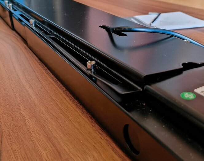 Trochu problematická montáž nohou k desce a montáž držáku kabelů