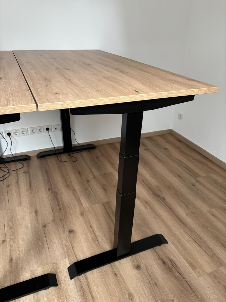 Sestavení stolu zabralo cca půl dne (zhruba 6-8 hodin) od vybalení přes sestavení nohou, vyřešení držáku kabelů, vycentrování nohou na desku s přesností na několik desetin milimetru (nechci mít stůl křivě), finálnímu připevnění všeho k desce pomocí akušroubováku až po ustavení, vyvážení stolu a vyzkoušení. Nakonec vše fungovalo na první pokus. Dokonce si stůl pamatuje nastavení všeho i při odpojení od elektřiny - pračky a myčky by se mohly inspirovat! :-)