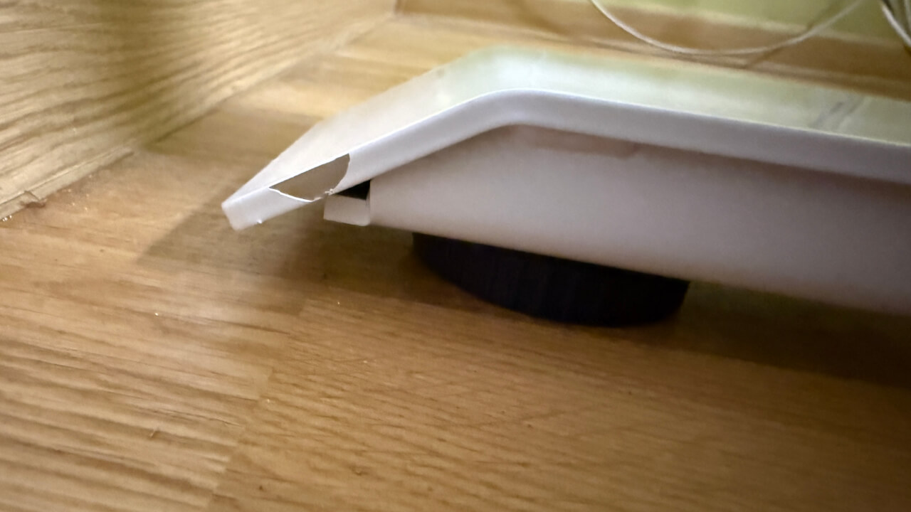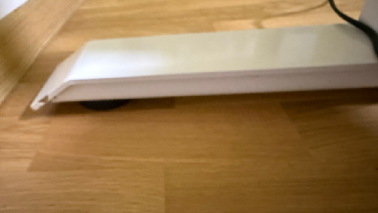 Druhým (souvisejícím) zádrhelem bylo přimontování nohou k desce, kde bylo potřeba je nejen správně vycentrovat, ale také určit, jak daleko mají být nohy od krajů desky (co je nejlepší např. pro stabilitu stolu). Nikde jsem se to nedočetla (nakonec jsem to určila podle držáku kabelů viz výše), stejně jako to, že přijde čistá deska a cokoliv se k desce montuje, se připevní pomocí samořezných šroubů (včetně ovladače). Je to pracnější způsob, než kdyby byly předpřipravené otvory na šrouby a nohy i ovladač by se pouze přišroubovaly obyčejnými šrouby, každopádně to dává větší svobodu si prvky (např. ovladač) na stůl umístit přesně podle vlastních potřeb, takže je to plus i mínus zároveň, jen je škoda, že to nikde není moc uvedené (nebo jsem to v informacích o stolu nenašla).