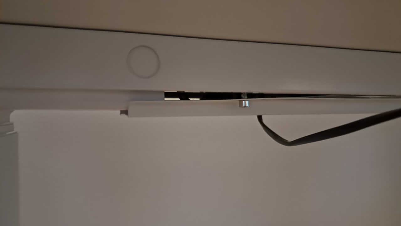 Druhým (souvisejícím) zádrhelem bylo přimontování nohou k desce, kde bylo potřeba je nejen správně vycentrovat, ale také určit, jak daleko mají být nohy od krajů desky (co je nejlepší např. pro stabilitu stolu). Nikde jsem se to nedočetla (nakonec jsem to určila podle držáku kabelů viz výše), stejně jako to, že přijde čistá deska a cokoliv se k desce montuje, se připevní pomocí samořezných šroubů (včetně ovladače). Je to pracnější způsob, než kdyby byly předpřipravené otvory na šrouby a nohy i ovladač by se pouze přišroubovaly obyčejnými šrouby, každopádně to dává větší svobodu si prvky (např. ovladač) na stůl umístit přesně podle vlastních potřeb, takže je to plus i mínus zároveň, jen je škoda, že to nikde není moc uvedené (nebo jsem to v informacích o stolu nenašla).
