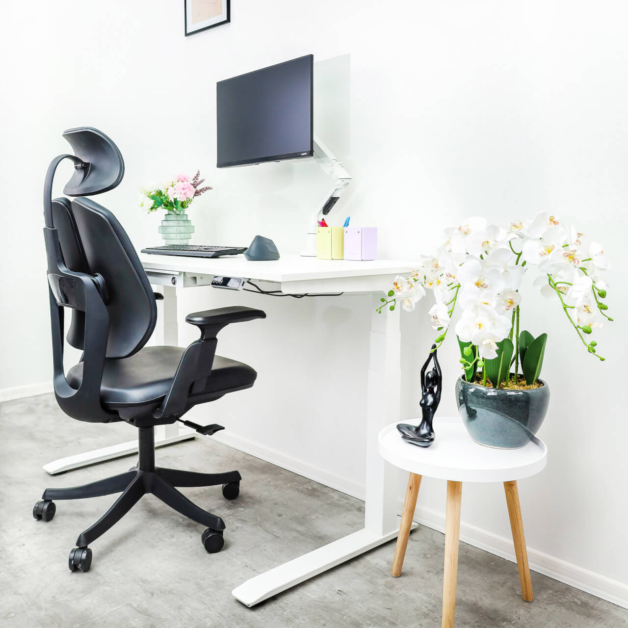 O náš stůl se můžete bez obav opřít, nebo si na něj i sednout. Perfektním doplňkem k výškově nastavitelnému stolu je ergonomická kancelářská židle, která vám zajistí komfort jak při stání, tak i při sezení!