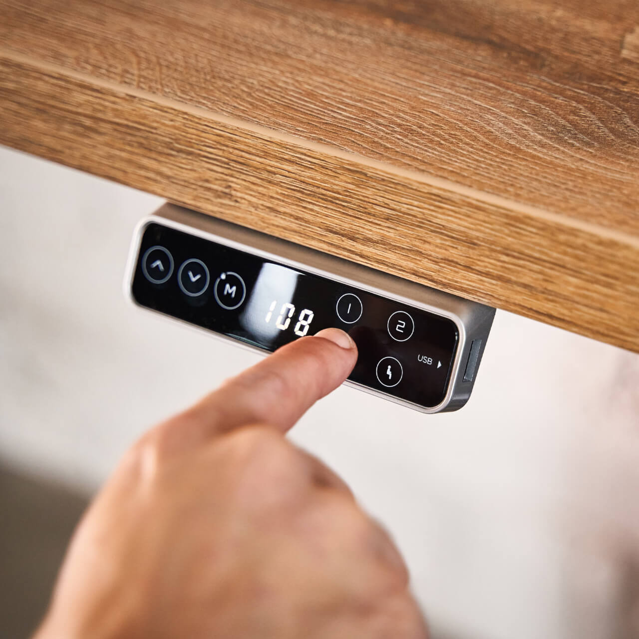 ✓ Dětský zámek zablokuje ovládání a zabrání nechtěné změně výšky stolu.