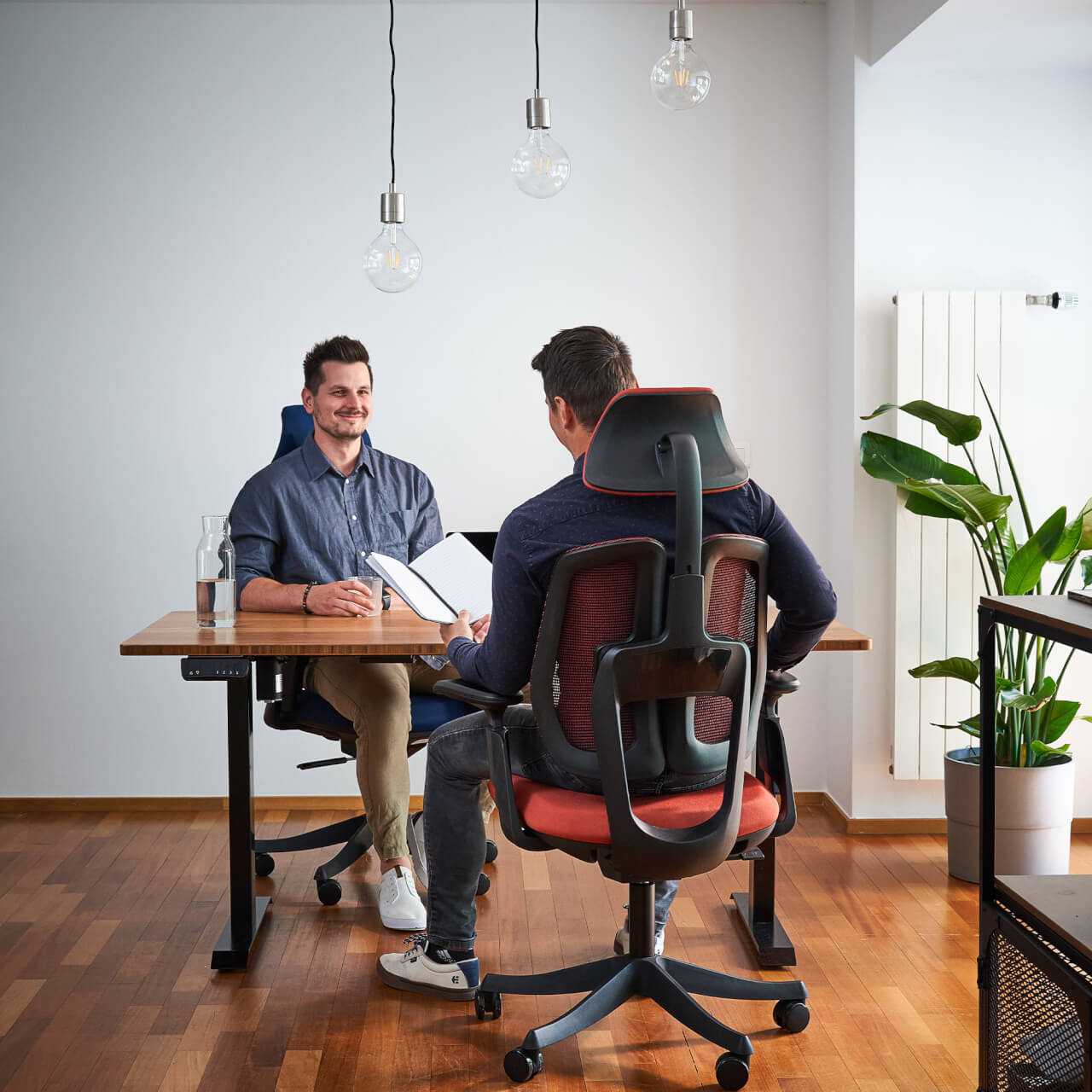 O náš stůl se můžete bez obav opřít, nebo si na něj i sednout. Perfektním doplňkem k výškově nastavitelnému stolu je ergonomická kancelářská židle, která vám zajistí komfort jak při stání, tak i při sezení!