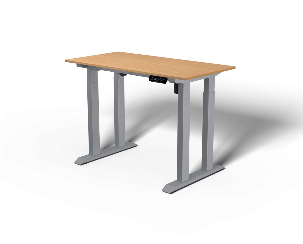 Výškově nastavitelný stůl, který doslova ctí své jméno. Pevný jako skála, stabilní za každých okolností. Díky čtyřem robustním nohám může skutečně garantovat 100% stabilitu, a to nejen při sezení, ale i v nejvyšší poloze nebo při jednostranném zatížení. Výšku stolu lze nastavit v rozmezí 72–120 cm, což odpovídá ergonomii pro postavy vysoké 150-190 cm.