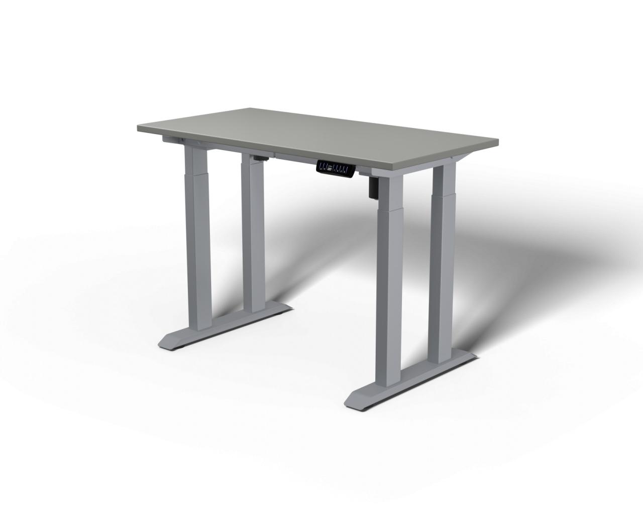 Výškově nastavitelný stůl, který doslova ctí své jméno. Pevný jako skála, stabilní za každých okolností. Díky čtyřem robustním nohám může skutečně garantovat 100% stabilitu, a to nejen při sezení, ale i v nejvyšší poloze nebo při jednostranném zatížení. Výšku stolu lze nastavit v rozmezí 72–120 cm, což odpovídá ergonomii pro postavy vysoké 150-190 cm.