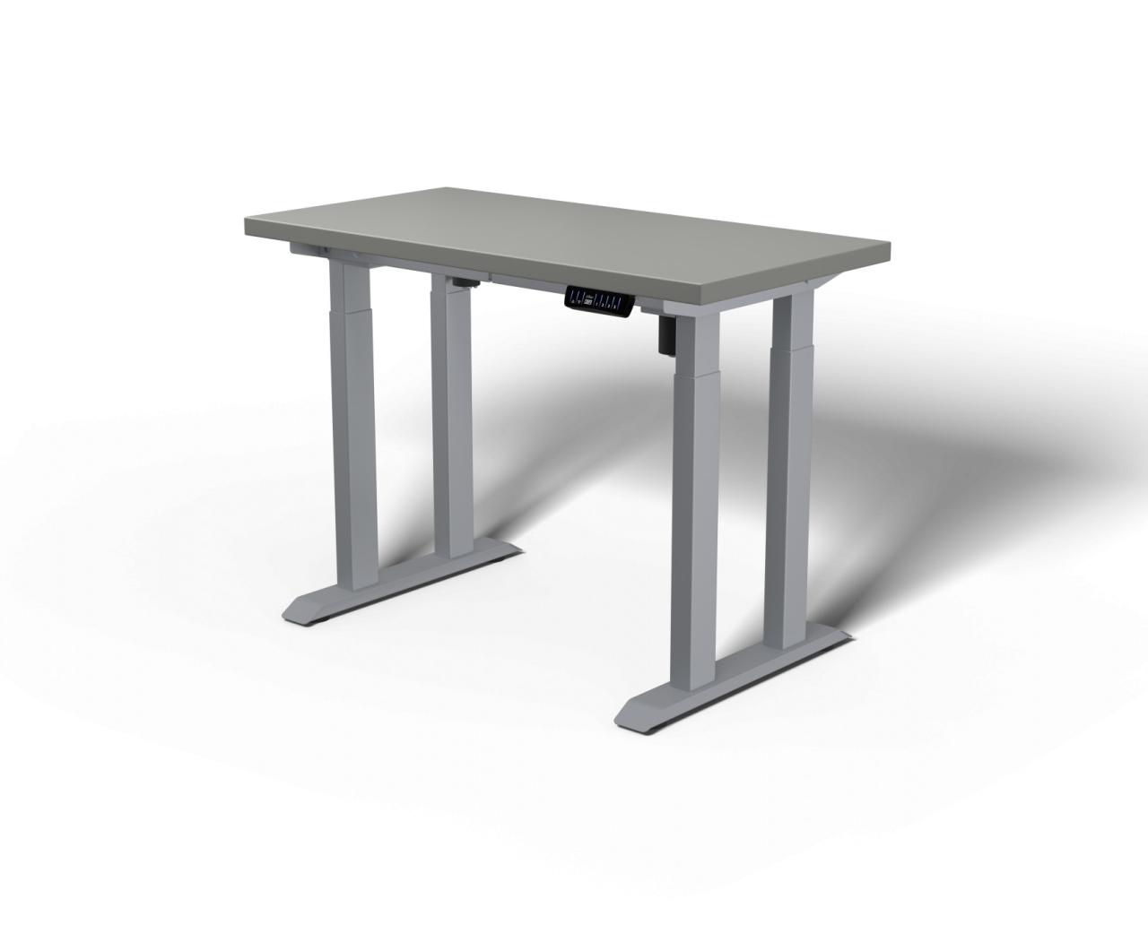 Výškově nastavitelný stůl, který doslova ctí své jméno. Pevný jako skála, stabilní za každých okolností. Díky čtyřem robustním nohám může skutečně garantovat 100% stabilitu, a to nejen při sezení, ale i v nejvyšší poloze nebo při jednostranném zatížení. Výšku stolu lze nastavit v rozmezí 72–120 cm, což odpovídá ergonomii pro postavy vysoké 150-190 cm.